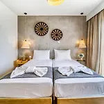 Heliophos Villa Aelia comes with a sofa set and a writing desk, as well as a multi-channel television. An air conditioner are provided for a comfortable stay. Bathroom facilities also include a separate toilet and a bath. There are hair dryers and towels for guests' comfort.